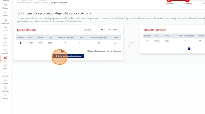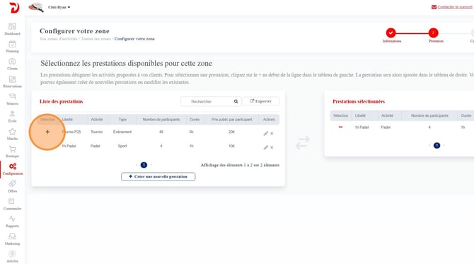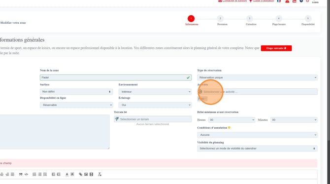 Cliquez sur la zone d'activité dans la liste des activités disponibles.