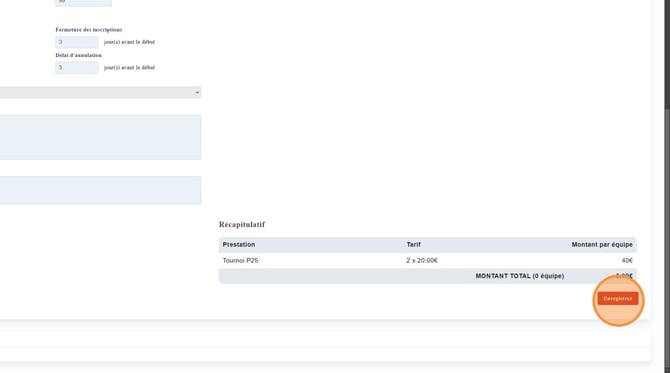 Cliquez sur Enregistrer pour créer l’événement du tournoi.