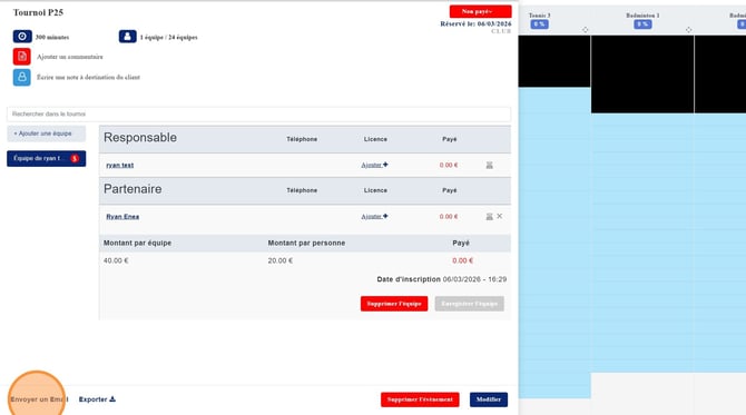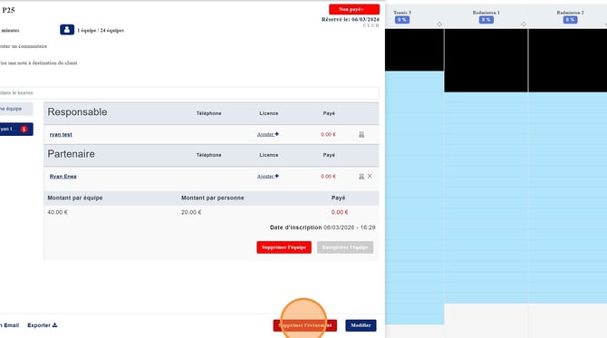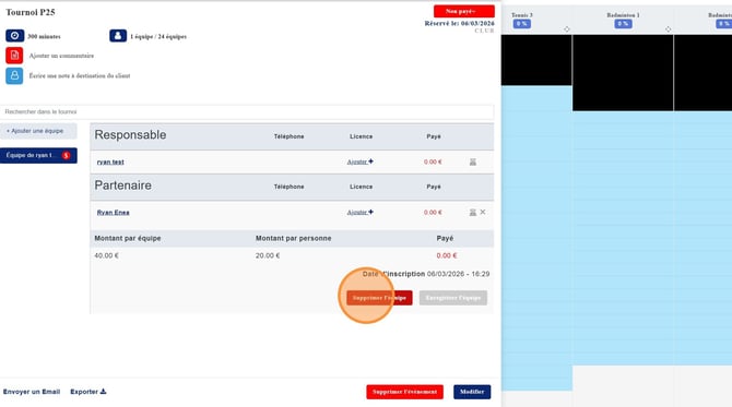 Dupliquer ou supprimer l’événement ou une équipe si nécessaire
